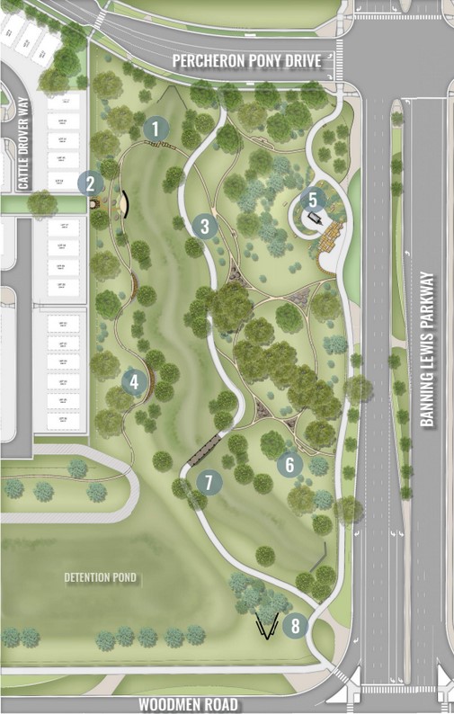 Percheron is built for the way you really live—where stepping outside means stepping into possibility. A connected network of multi-use trails (5.4 miles) ties together 30 acres of parks and open space, creating an easy rhythm for morning runs, stroller walks, and after-dinner loops. Pocket greens and gathering lawns bring neighbors together, while natural areas offer quiet moments to reset.